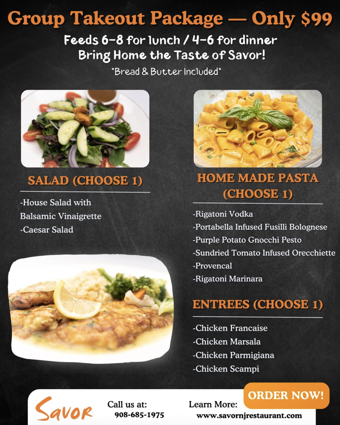 At Savor Restaurant in Somerville, NJ, takeout is more than just convenience — it’s restaurant-quality flavor wherever you are.