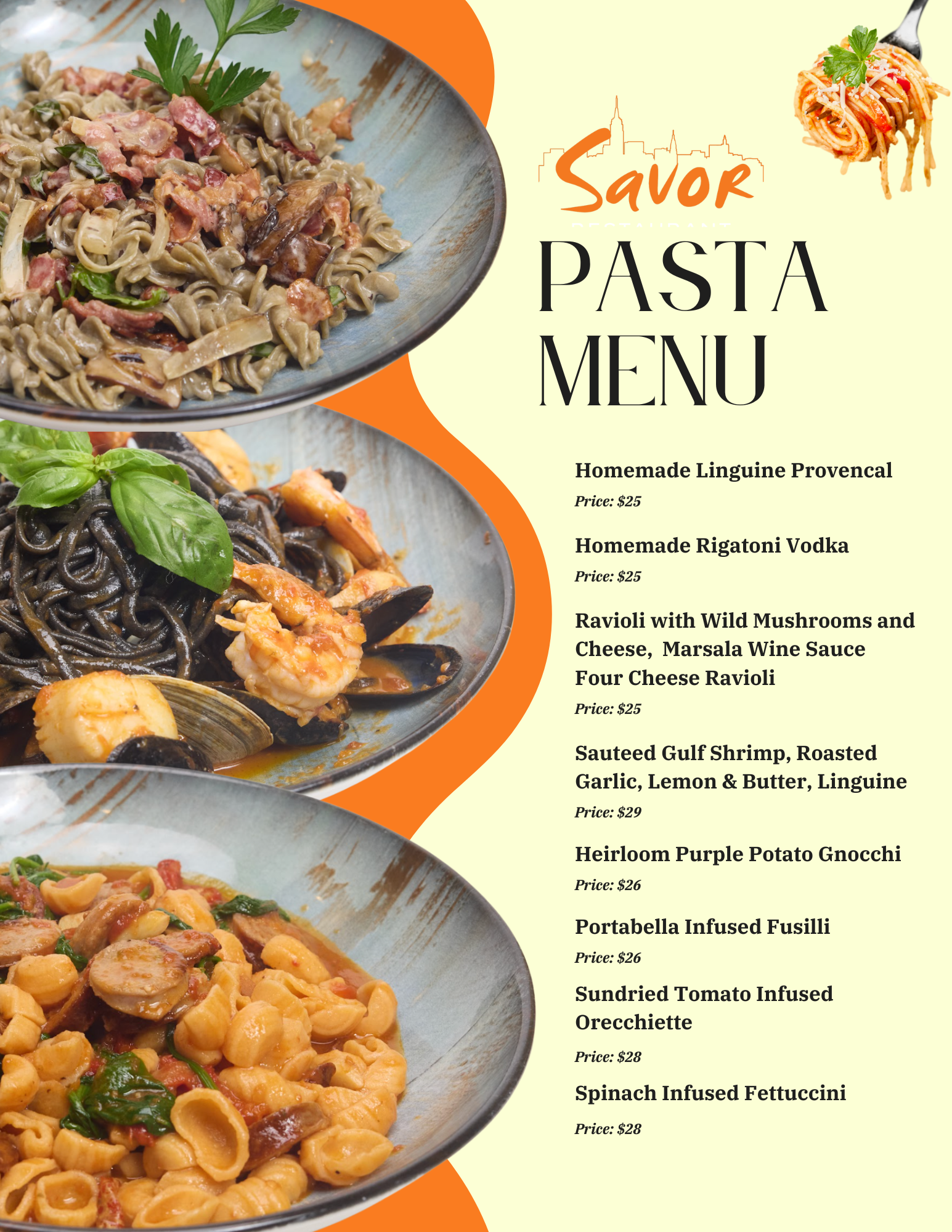 At Savor Restaurant in Somerville, every strand, shell, and swirl of pasta is made fresh in-house. Our chefs craft each batch daily, using the finest ingredients to deliver authentic flavor and perfect texture in every bite.